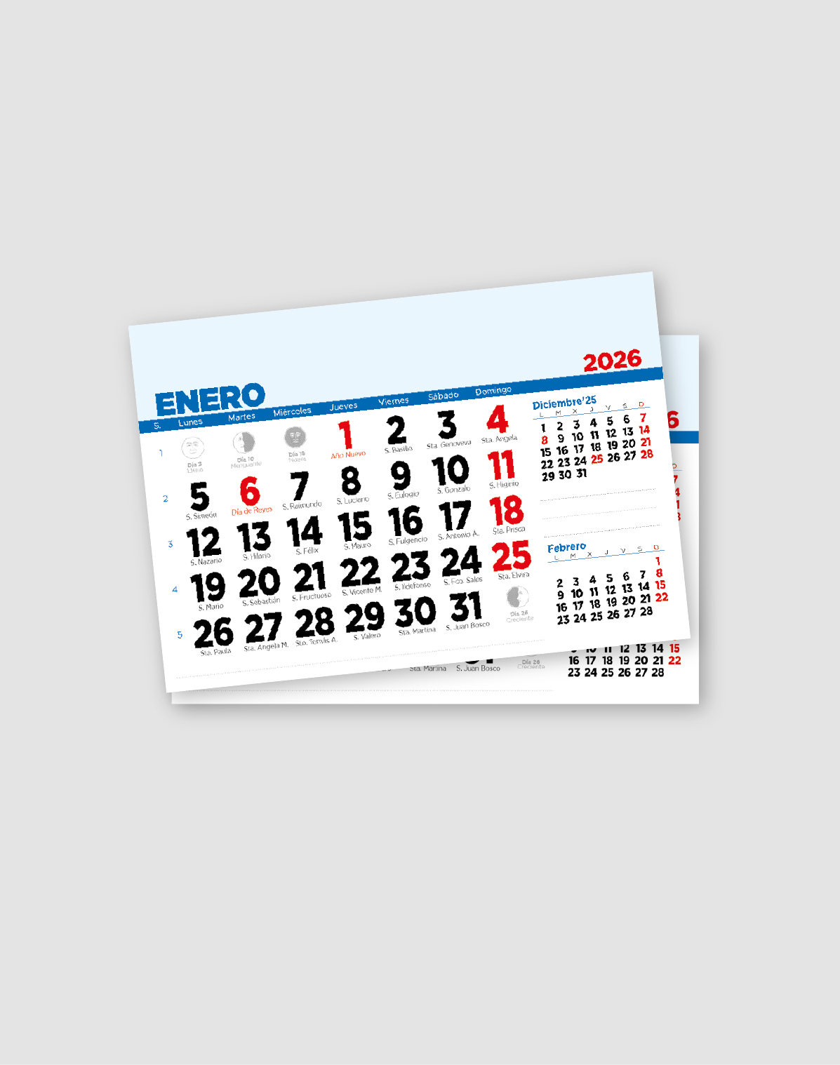 ¿Diseñas o vendes calendarios de pared? Completa tu producto con nuestras faldillas de calendario 2026 de pared, fabricadas con materiales de alta calidad y disponibles en varios formatos para adaptarse a tus necesidades.