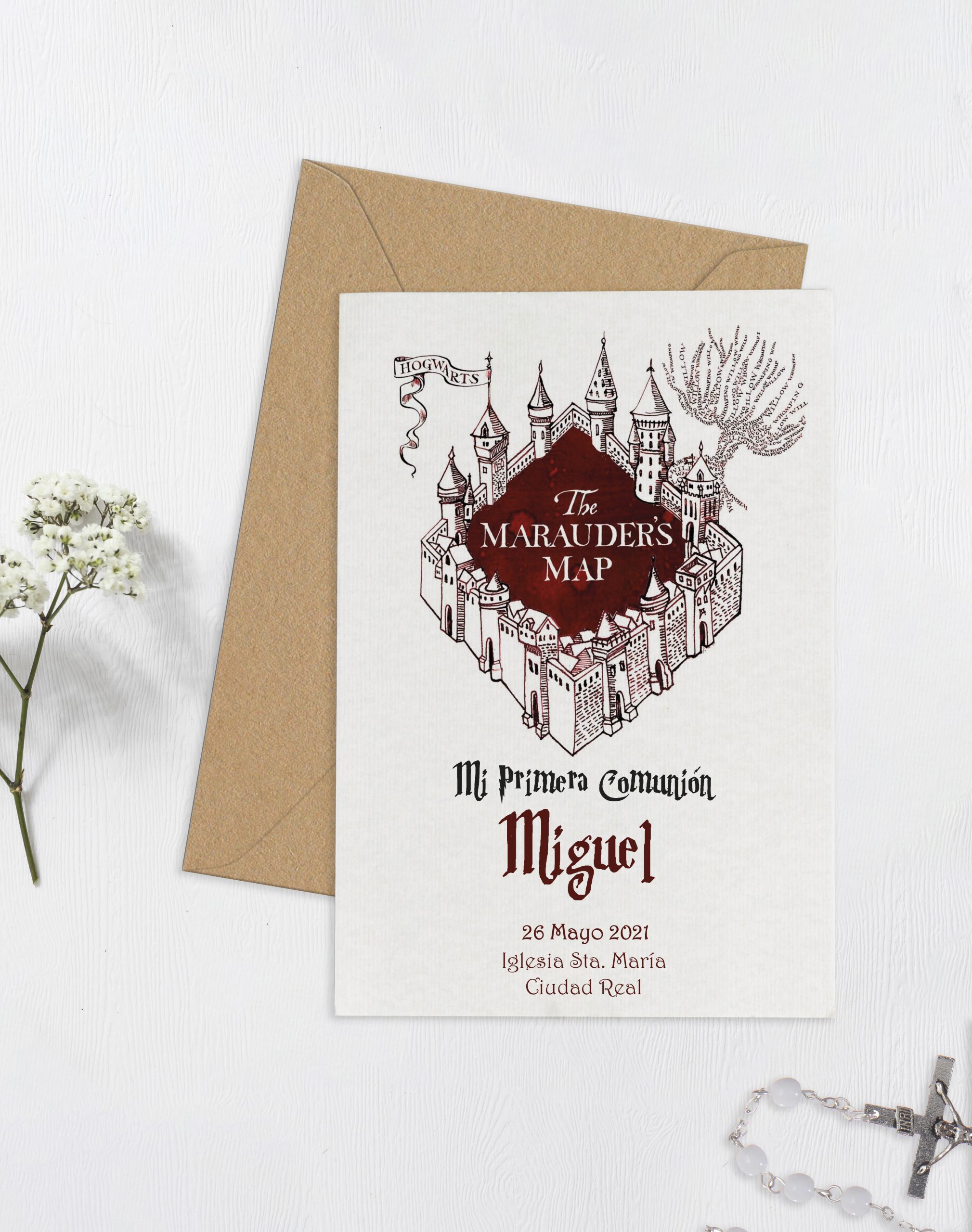 Invitación comunión Harry Potter. Todo lo que necesitas para las invitaciones de comunión puedes encontrarlo aquí. Hay disponibles diferentes modelos para hacer de tu comunión un evento único y personalizado que se adapte a los gustos de tu hij@. Además puedes combinarlo con etiquetas, pegatinas en vinilo, marcapáginas, banderines… todo con el mismo diseño para hacer una comunión diferente y personalizada.
