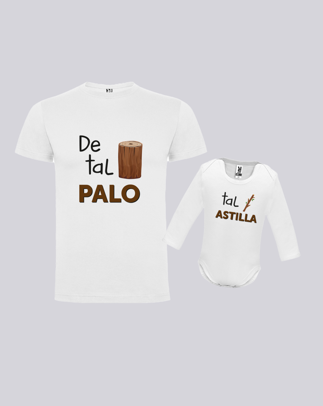 Pack de tal palo tal astilla es un conjunto de camiseta de hombre de manga corta y de body de manga larga impresos a todo color. Es un regalo original y sorprendente para el día del padre, para padres primerizos, cumpleaños, amigos invisibles… La camiseta de manga corta está fabricada en 100% algodón. Con un cuello redondo de 4 capas en canalé 1×1 con cubrecosturas de hombro a hombro. Y con costuras laterales. La impresión está disponible en dos tamaños: 30×40 y 20×30. Dependiendo la talla que elijas, es recomendable elegir un tamaño de impresión mayor si la talla es más grande. Body de bebé es de manga larga de punto liso con el cuello redondo y bajo ribeteado en canalé 1×1. Tiene cierre con botones a presión en la entrepierna y el hombro es de apertura cruzada. La impresión se realiza en serigrafía digital, un método novedoso de impresión. Es resistente a lavados, sin embargo es recomendable lavar del revés la prenda para que la impresión no roce con el tambor de la lavadora y pueda rallarse o estropearse. La temperatura recomendada de lavado es inferior a 30º. Y para una mejor conservación también es recomendable que se planche del revés. Sorprende a papá en su día demostrándole tu cariño con un diseño especial para él. Tenemos disponibles más modelos en nuestra web para elegir. El día del padre que nunca olvidará. Podrás personalizarla con su nombre, que irá impreso justo debajo de la ilustración.