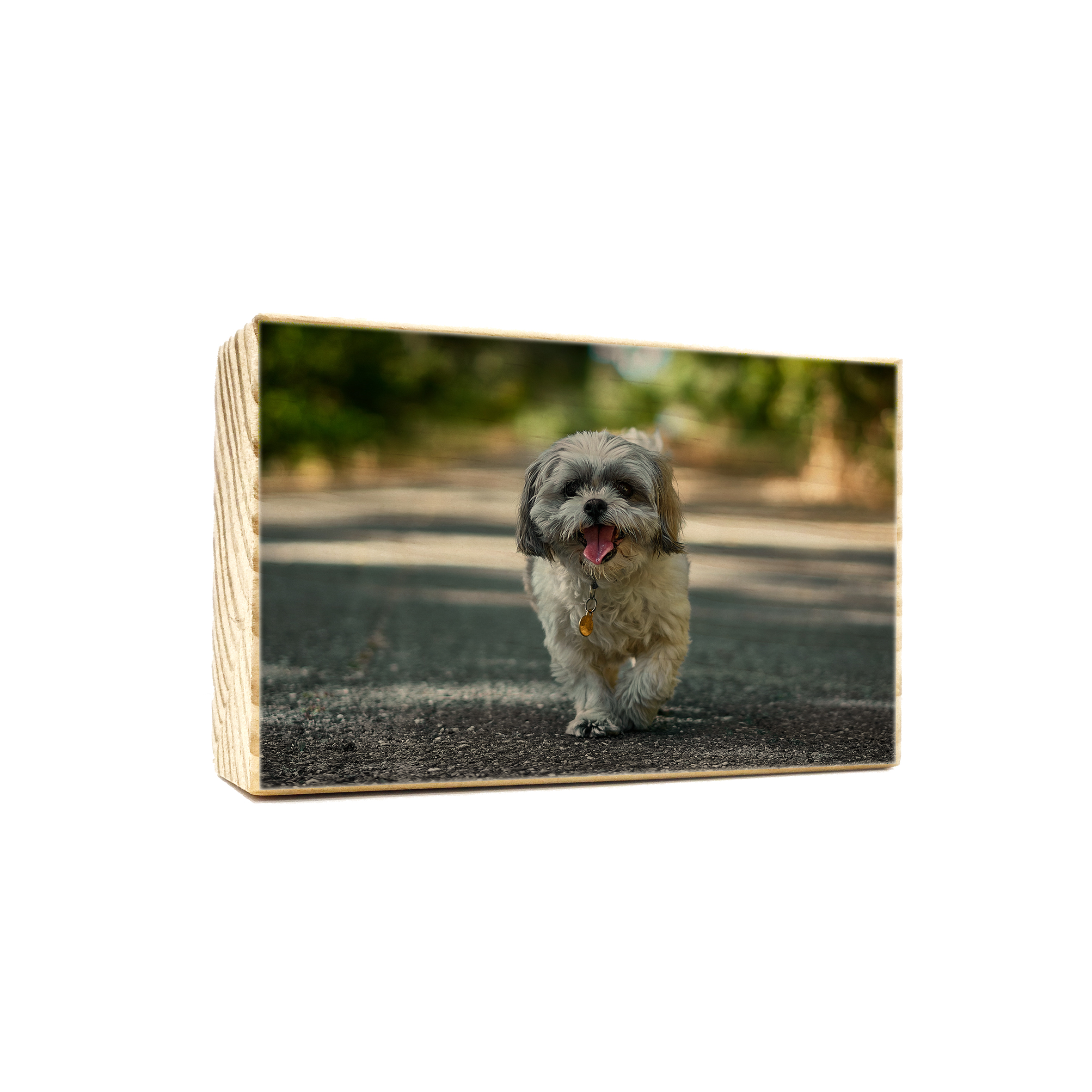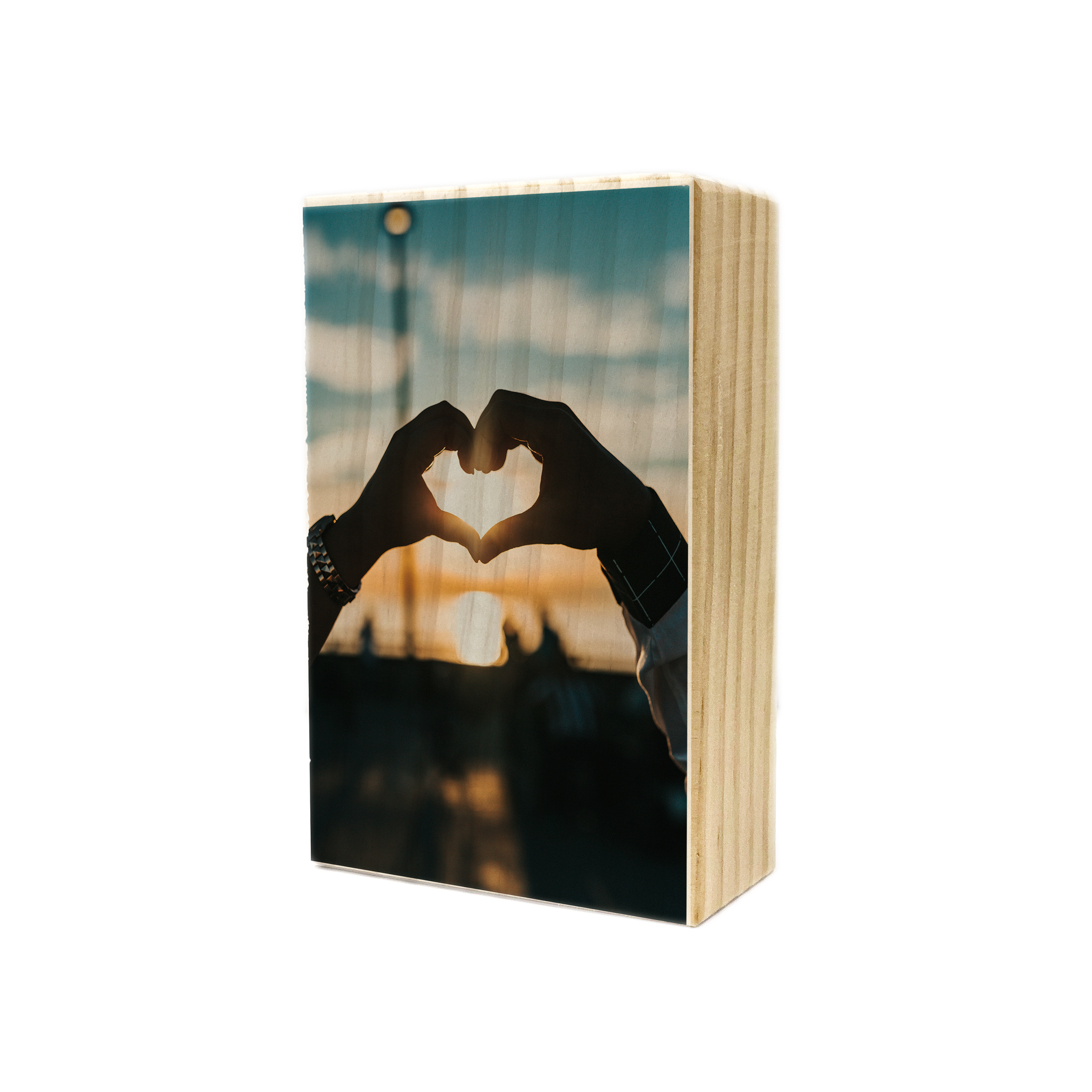 Taco de madera de pino personalizado a tu gusto. Sube tu foto o diseño, y nosotros nos encargamos de imprimir directamente sobre la madera mediante impresión UV de alta calidad. El resultado final es muy elegante.